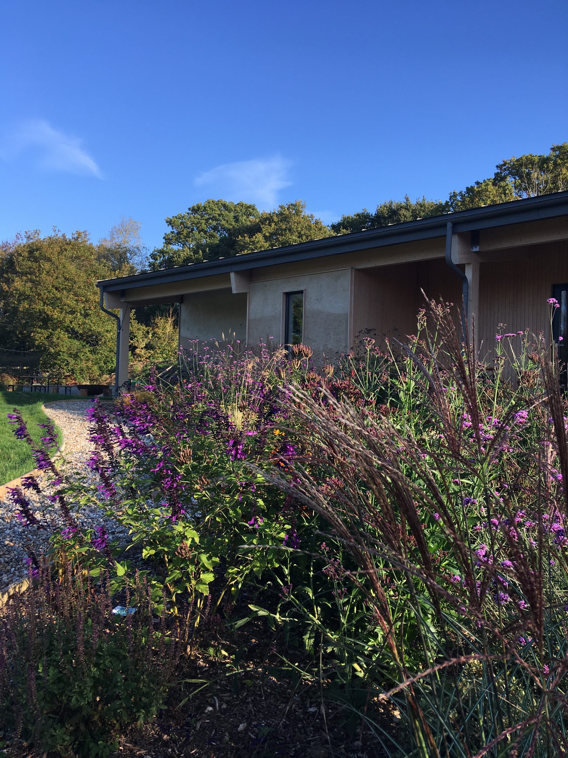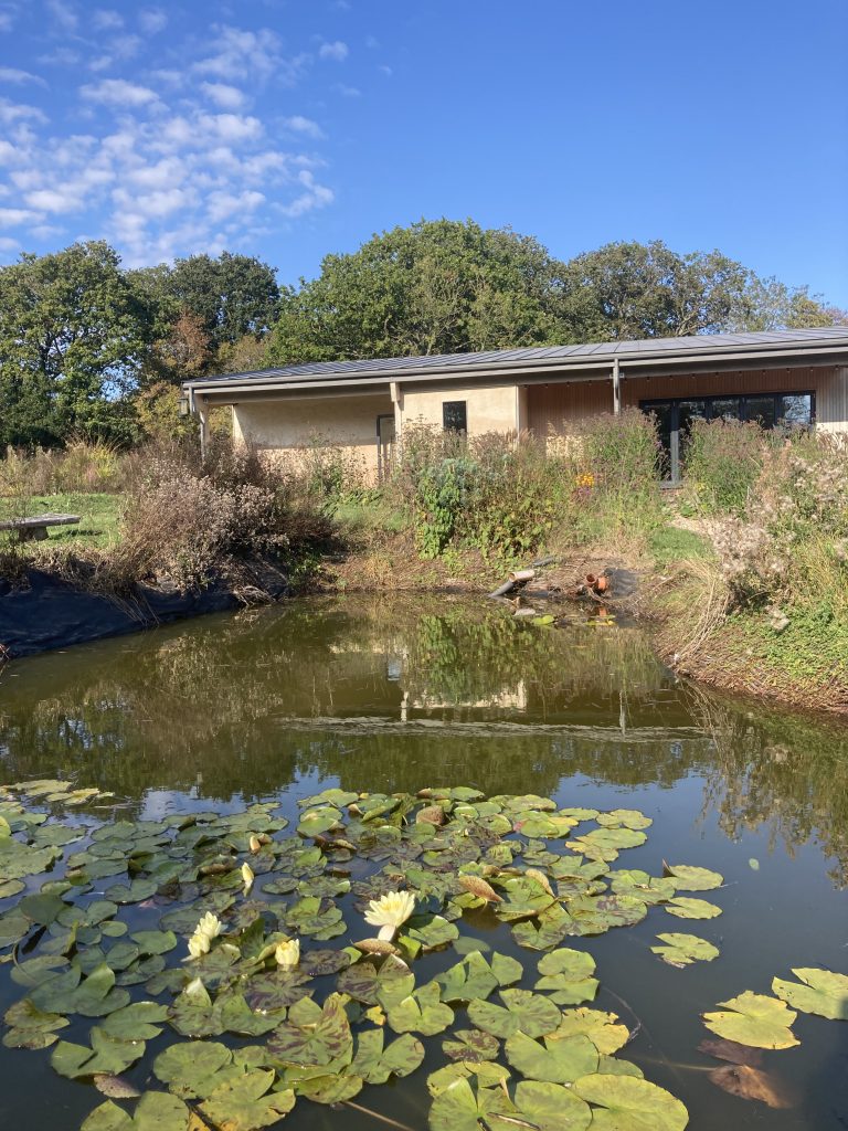 The Spithurst Hub garden is a sanctuary designed for relaxation, recreation and fitness-related outdoor activities, complementing our new fitness studio. Our garden also serves as a great place for working outdoors. There is seating on the verandas of the building and we have a stretch tent in place as well as an outdoor meeting pod in our wild garden area. There are two large fire bowls and rustic benches dotted around the pond.